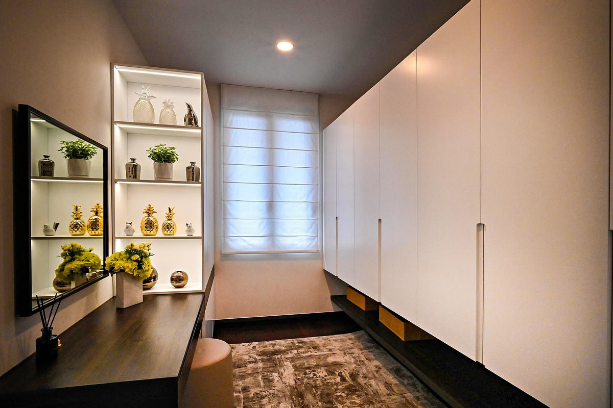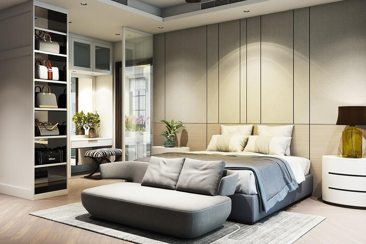 Caminetti walk-in, battenti o scorrevoli per camere da letto. Interni personalizzati con cassettiere, pantaloniere, portascarpe, illuminazione LED sensibile. Finiture effetto lino, rovere termotrattato o laccato per bagni en-suite.