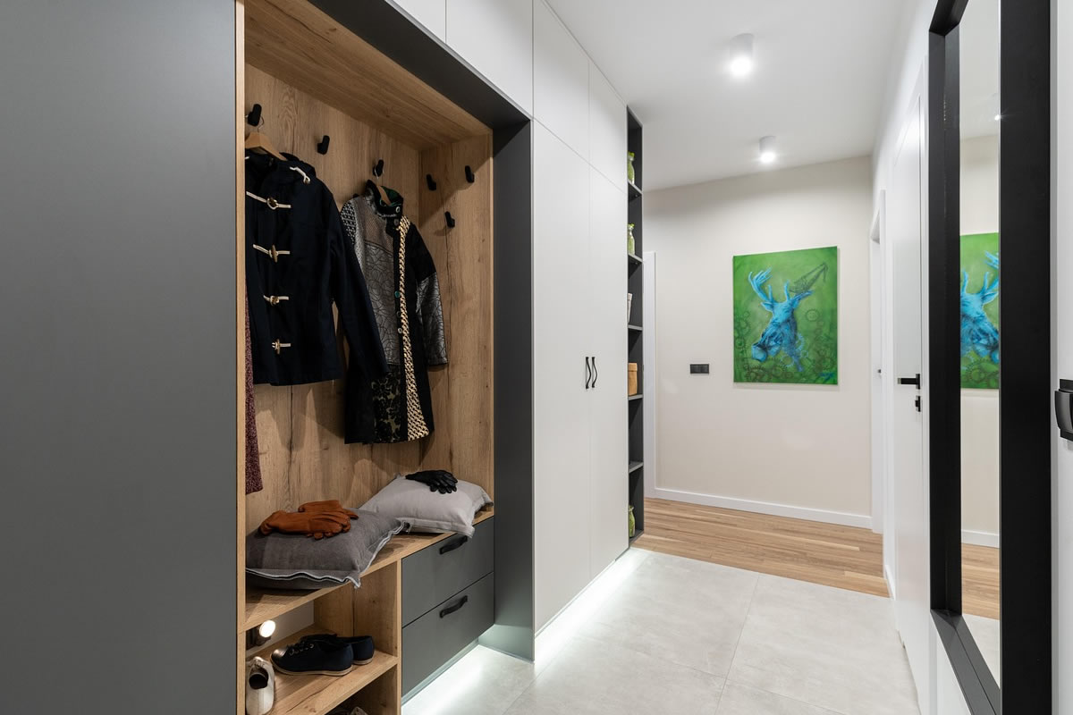 Walk-in cabinati, scorrevoli 2-5 ante o battenti per camere matrimoniali. Interni modulari: pantaloniere, cassettiere profumate, portaborse, faretti LED apertura automatica. Finiture termotrattate noce o laccato per umidità Val Trebbia, resistenti a sbalzi termici.